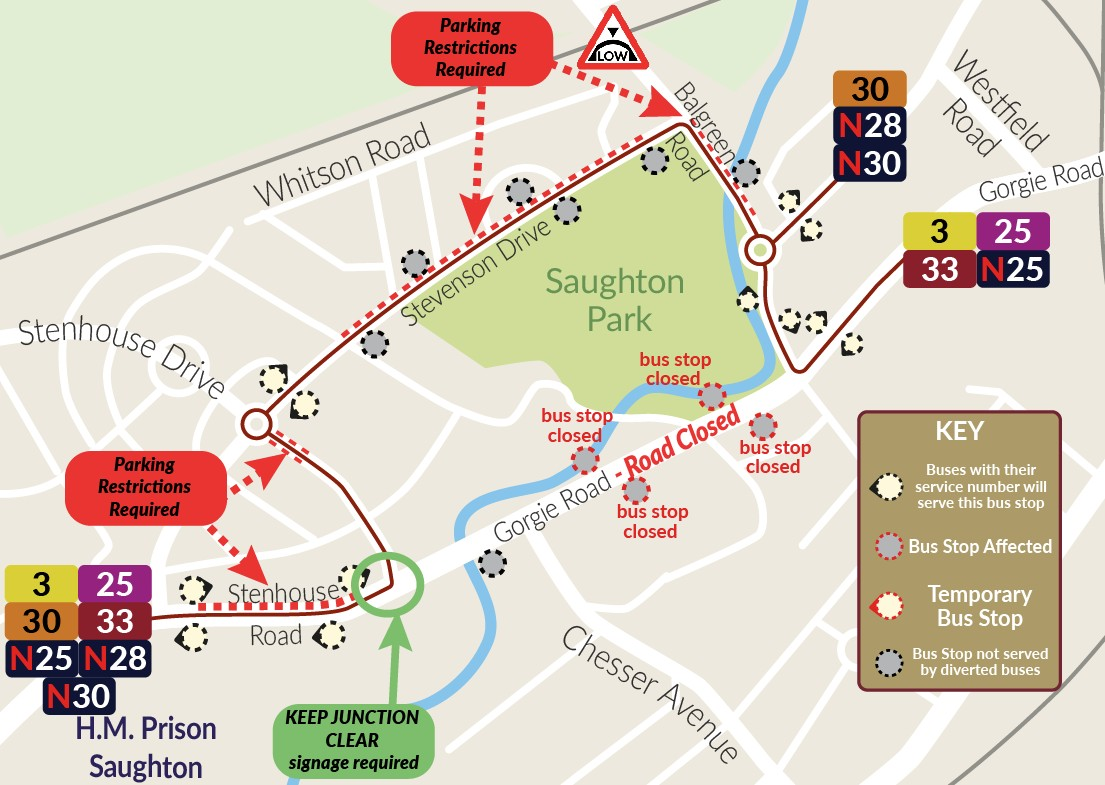 We would ask people to follow all diversion signs and to allow extra time for journeys, particularly at peak times. More details on parking restrictions and bus services can be found below.